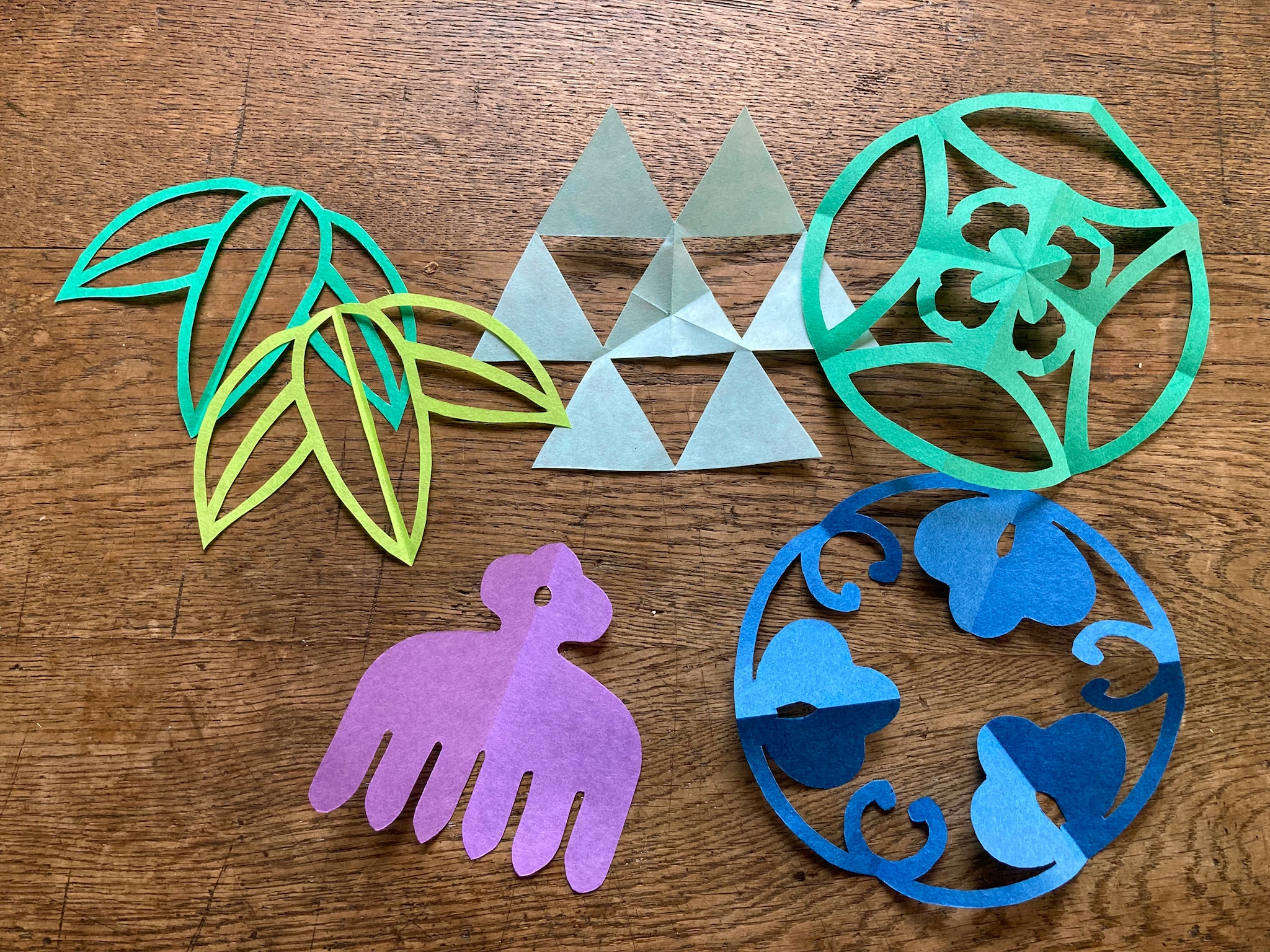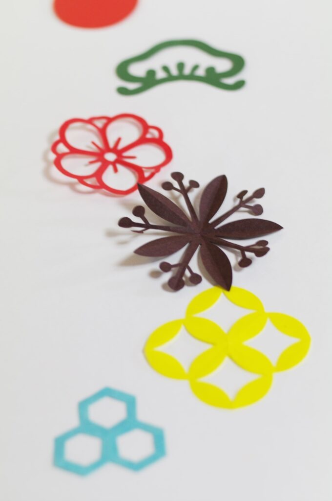 お正月準備にぴったりな、おめでたい紋が作れます。1/4サイズの折り紙で作れる型紙もあり、たくさん作れます。