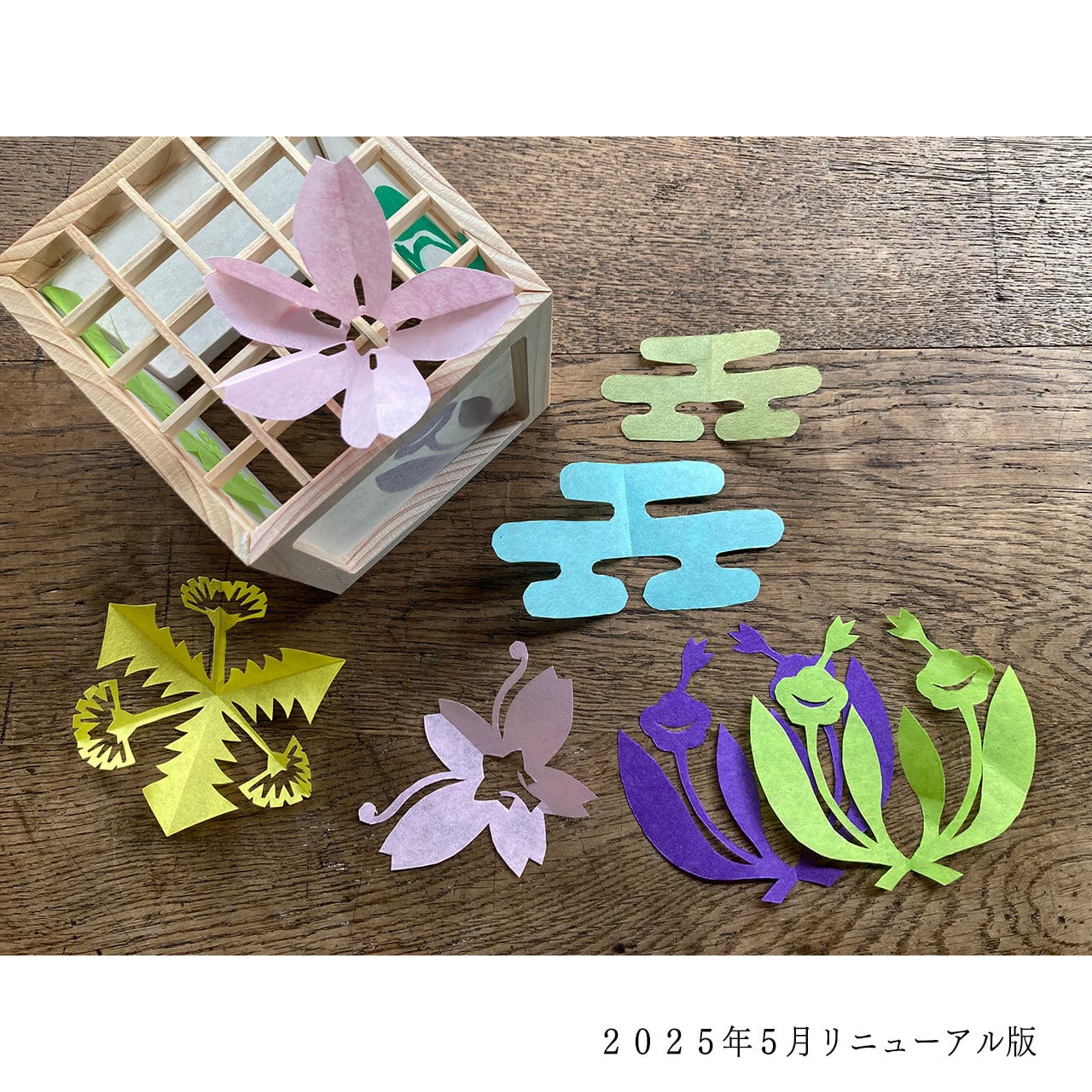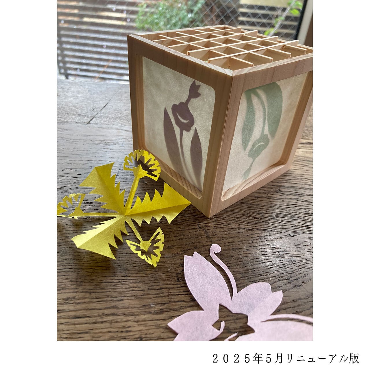 ご自分で組み立てた天竜ヒノキの行灯に、うららかな春を喜ぶ紋切りのキリガミを切って貼って、花の開くのを心待ちにする春の日々のお部屋を飾りませんか。