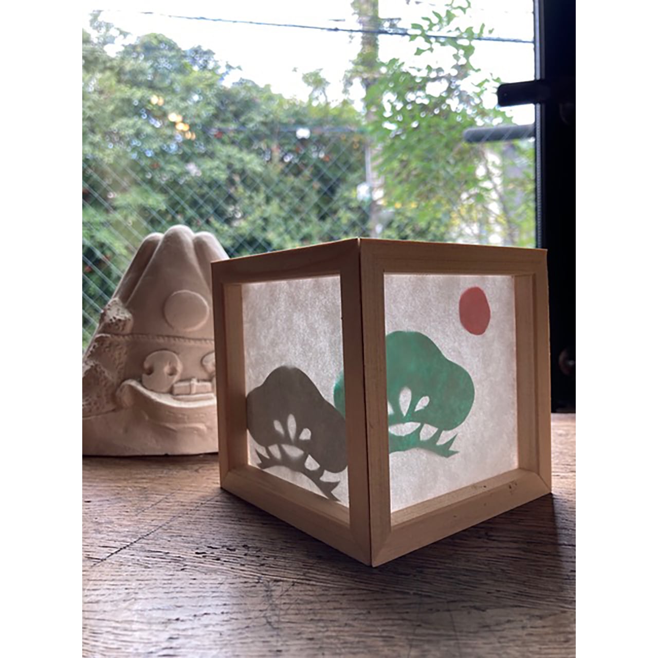 ご自分で組み立てた天竜ヒノキの行灯に、うれしいお祝いの場面にぴったりの紋切りのキリガミを切って貼って、お正月や年中行事、そして大切な方のおめでたい日をやさしく見守る「祝いあんどん」を作ってお楽しみいただけます。